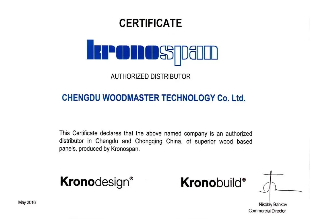 近期,我国西南区出现了非我司(成都沃特玛斯特科技有限公司)认证的“克诺斯邦板材”。我司自2016年起,直至今日,一直是罗马尼亚克诺斯邦授权的中国西南地区总代理,以下为我司持有的官方授权证书。